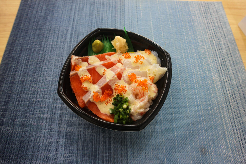 サーモン・生エビ・いか・とびこ・刻み葱・柚子胡椒マヨだれ