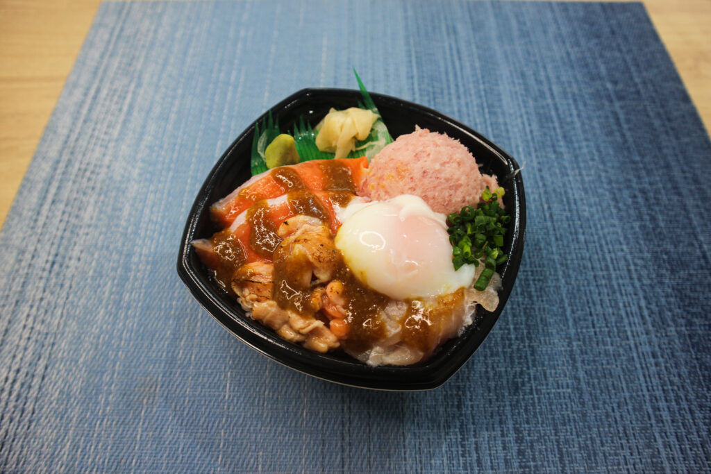 ねぎとろ・炙りサーモン・炙りチャーシュー・炙りはらす・錦糸玉子・味噌バターだれ