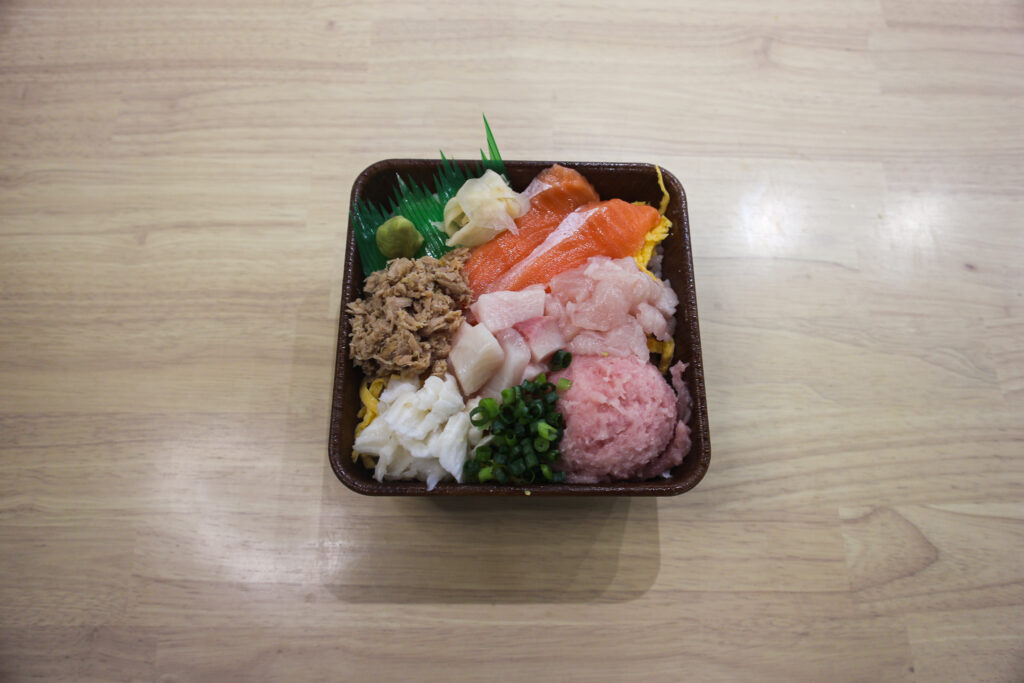 とろサーモン・ねぎとろ・はまち・ビンとろ切り落とし・縁側・まぐろ生姜煮・錦糸玉子・刻み葱
