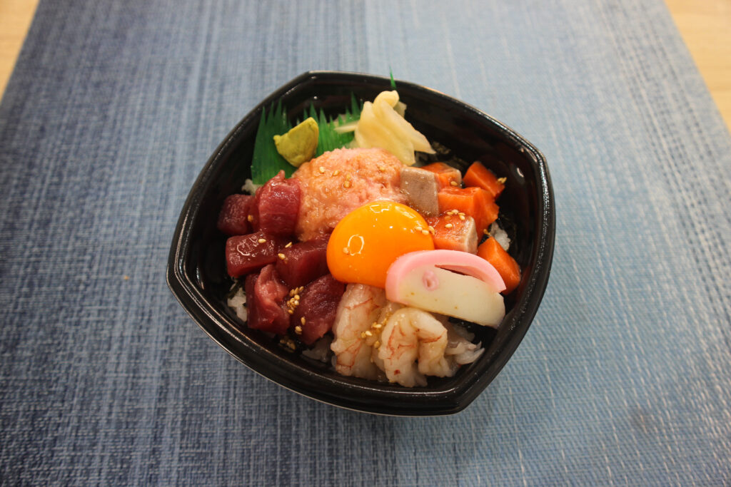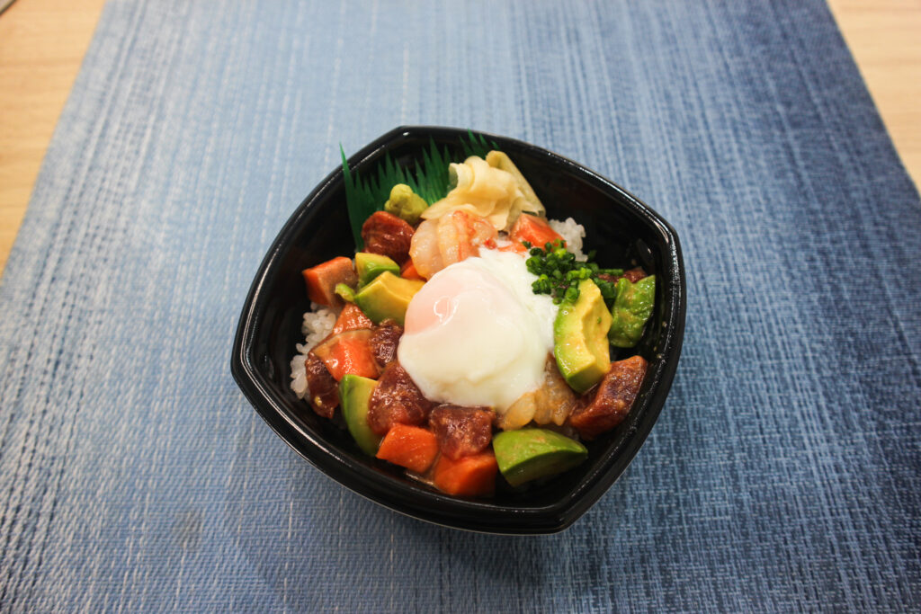まぐろ切り落とし・サーモン切り落とし・アボカド・生えび・温玉・スパイシーマヨポキソース